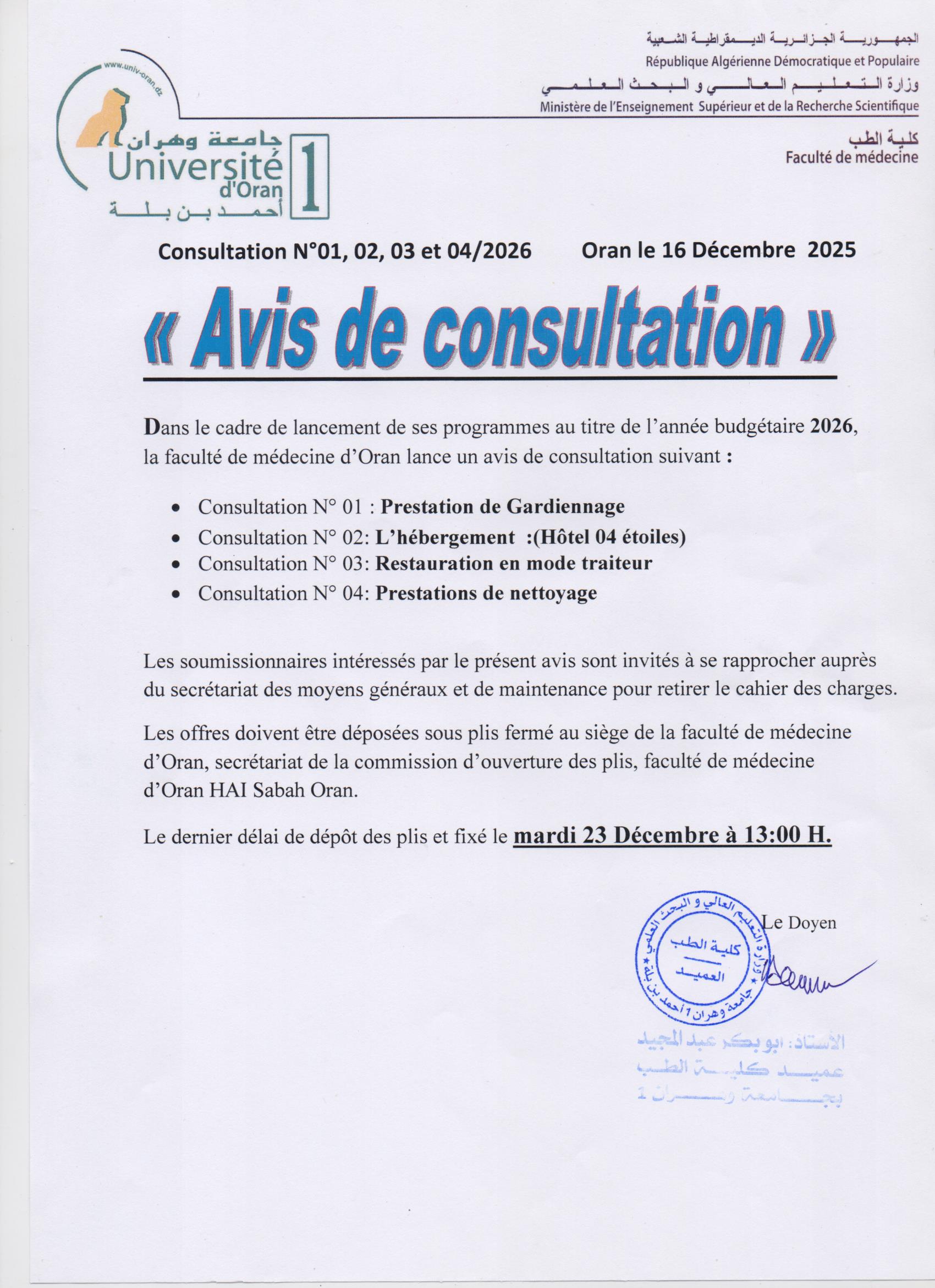 La Faculté de Médecine d’Oran et ses vingt et un (21) laboratoires de recherche affiliés aux trois départements vise à améliorer la santé de nos concitoyens.