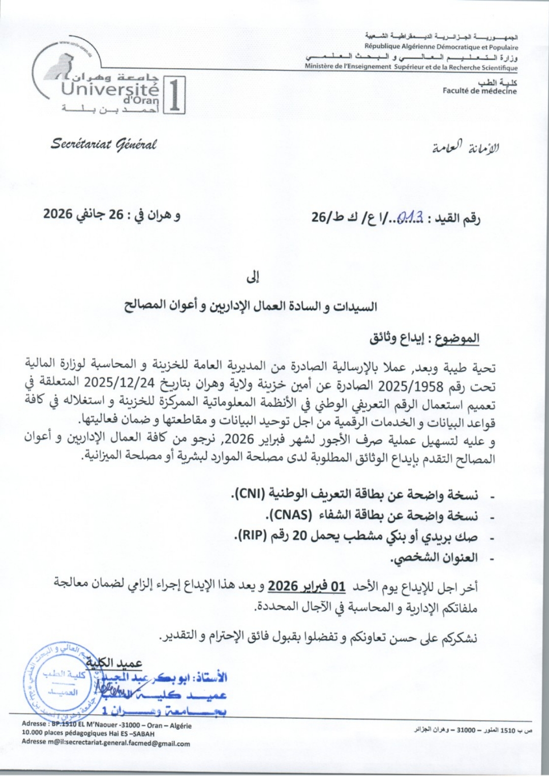 Investi récemment de la charge de diriger la faculté de médecine d’Oran, avec mon équipe très dynamique, plein d’énergie et animée de la volonté d’atteindre les objectifs annoncés et fixés par notre ministère.