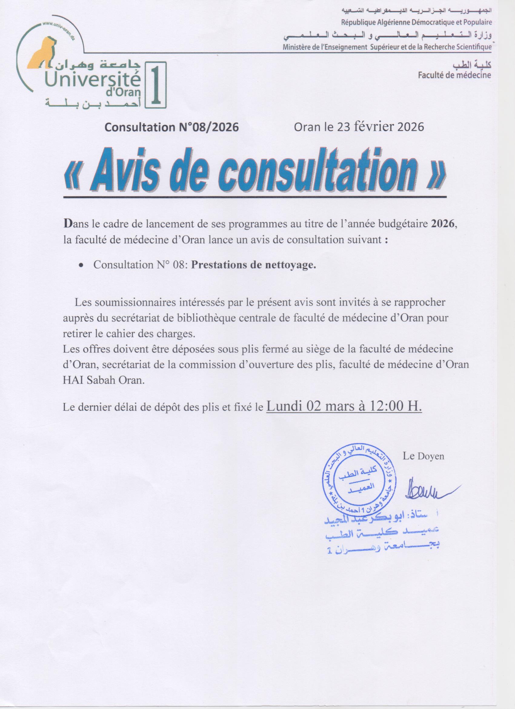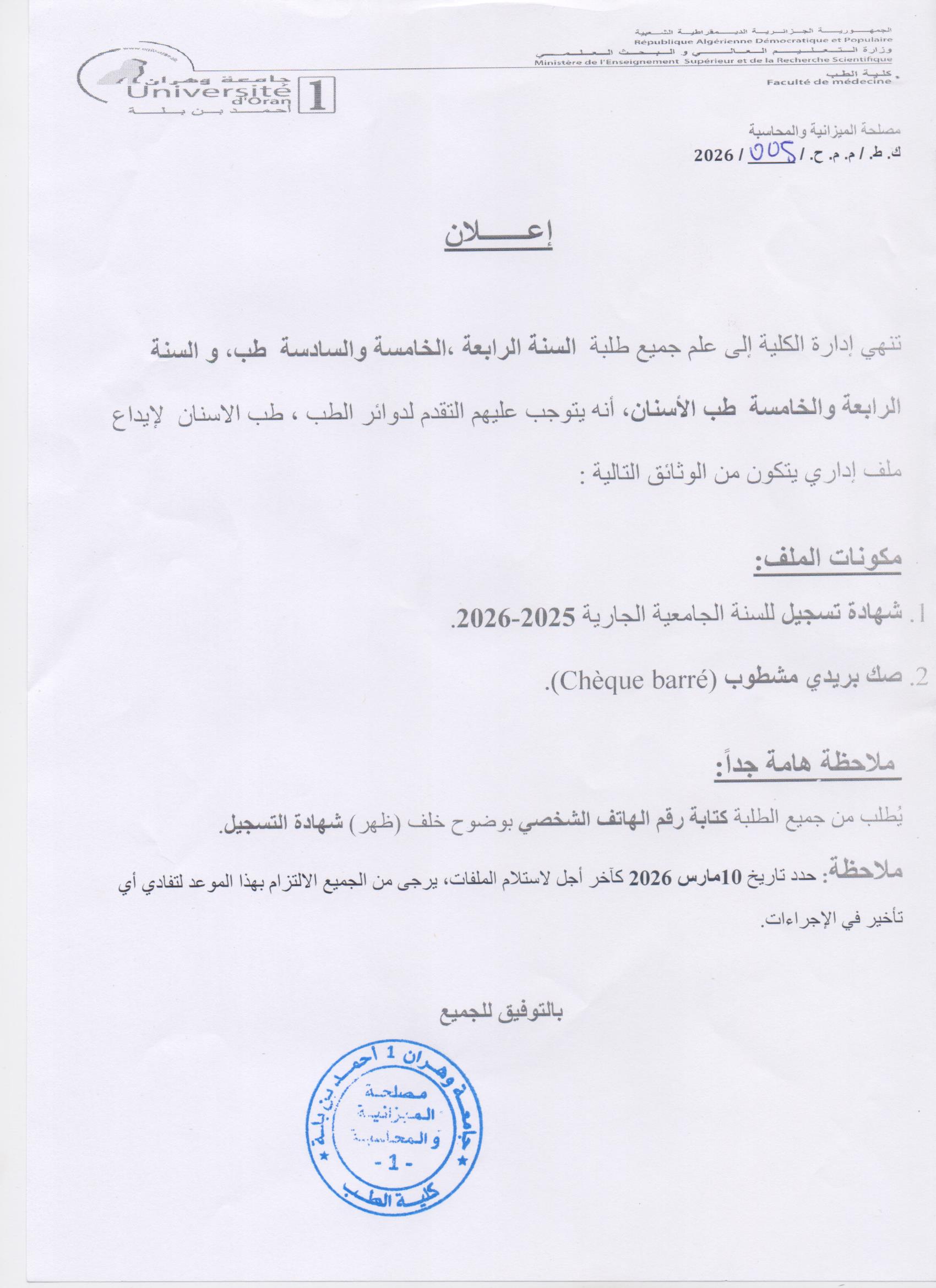 La Faculté de Médecine d’Oran a été créée en 1967 par Ordonnance N°67-278 du 29 Décembre 1967 où le Centre Hospitalo-Universitaire fut érigé en Université.