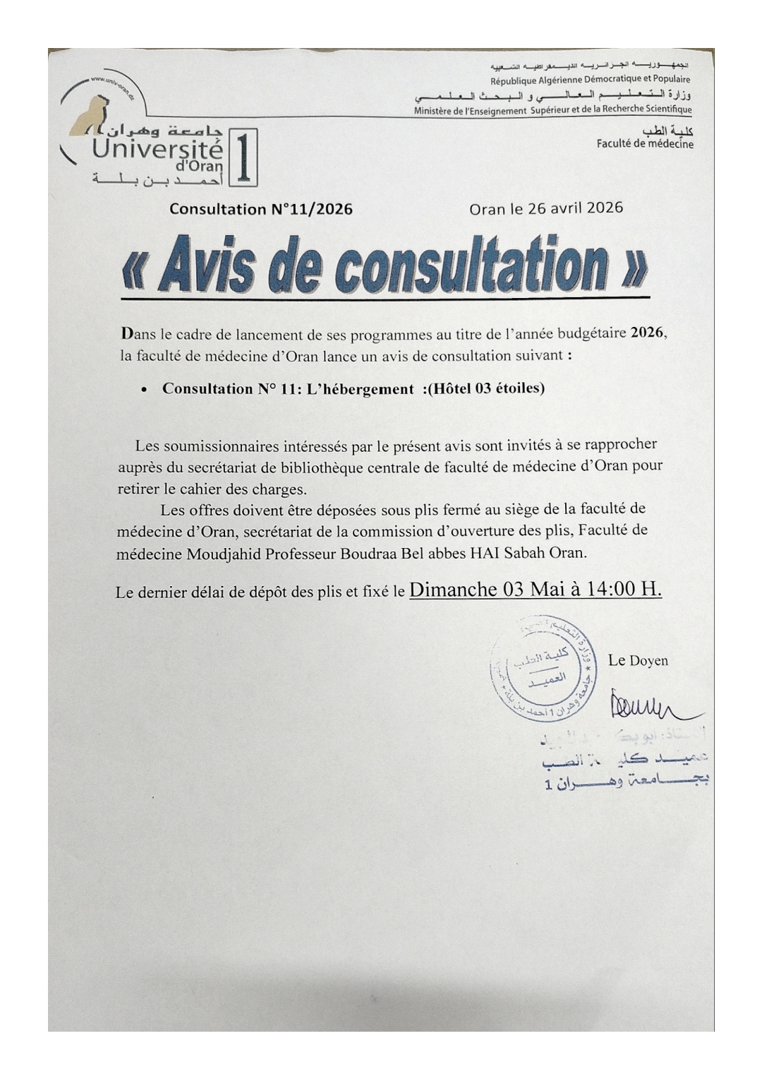 La Faculté de Médecine d’Oran et ses vingt et un (21) laboratoires de recherche affiliés aux trois départements vise à améliorer la santé de nos concitoyens.